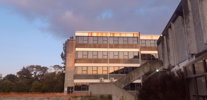 - This building once served with the teaching college of Massey University along with the rest of the Hokowhitu campus. The land is owned by a development company who are redeveloping the area - construction work can be seen on the left. - This building, along with the rest of the campus, will soon be removed and replaced with housing. - The Awanui building housed MUSAC and CED
