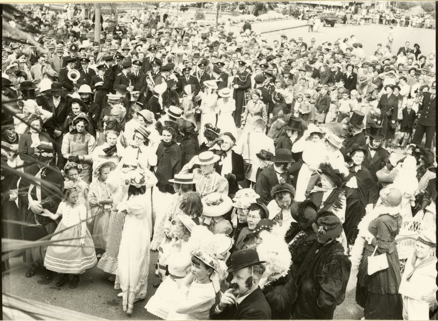 There was a week of events to celebrate Palmerston North being granted Borough status in 1877. On Wednesday 19 March there was a depiction of the first train from Wellington arriving at the site of the original station in The Square. Here, a crowd in period costume await its arrival in The Square.