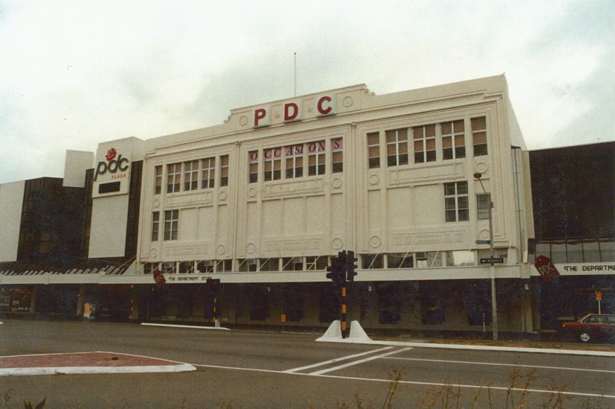 In 1927 a previous business on this site became the Premier Drapery Co Ltd and in 1929 the building was renovated and extended. In 1956 the PDC was taken over the Manawatu Co-Op Society and renamed the Premier Department Store. Over the years neighbouring properties were bought and the shop extended. In 1986 the PDC became part of the PDC Plaza. This was sold in 1988, and the PDC building demolished 1990.
