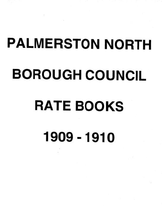 Palmerston North Borough Council Rate Book 1909 - 1910