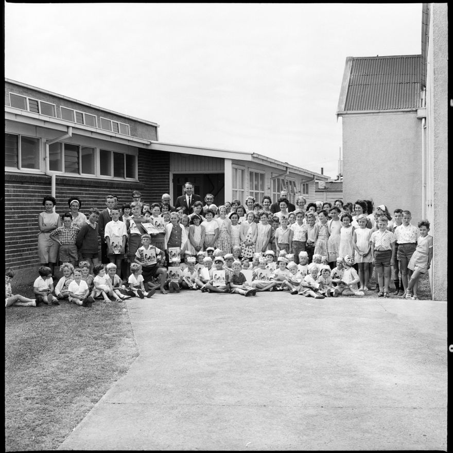 This image was taken for a story that ran in The Manawatu Evening Standard on 19th January 1966 "More than 120 Palmerston North boys and girls (seen here) are spending part of their summer holiday going to school. Children between three and 10 years of age will be spending their mornings at a vacation Bible school for the next 10 days." The Bible school was held at St Luke's Lutheran Church in Church Street.
