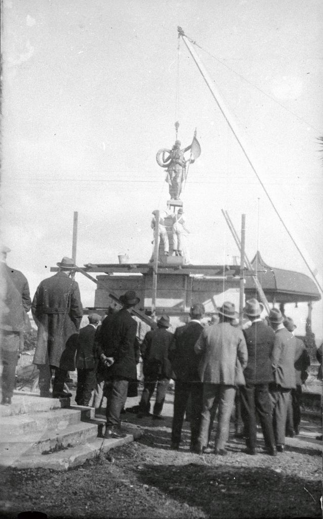 A war memorial to commemorate local soldiers who died in World War One was erected in the centre of The Square, Palmerston North, in 1926. The figure that sits atop the memorial was based on a similar one in Folkstone, England. Today it also commemorates those who died in World War Two, and the Korean and Vietman Wars.