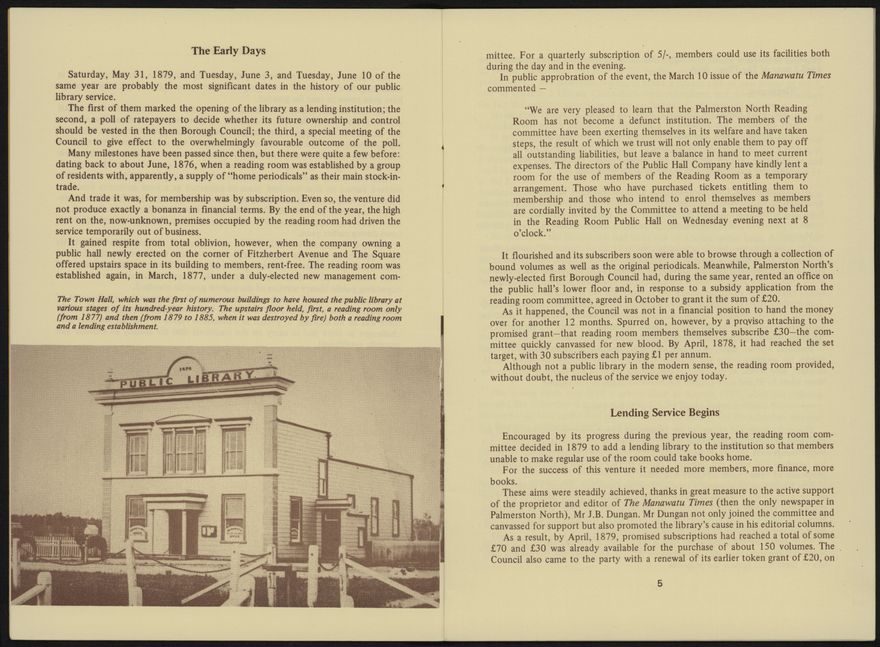 This history of the Palmerston North City Library (1879-1979) was written by Ian W Malcolm, City Librarian at time of publication.