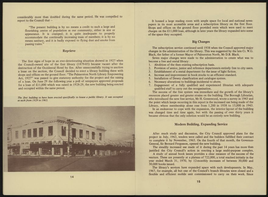 This history of the Palmerston North City Library (1879-1979) was written by Ian W Malcolm, City Librarian at time of publication.