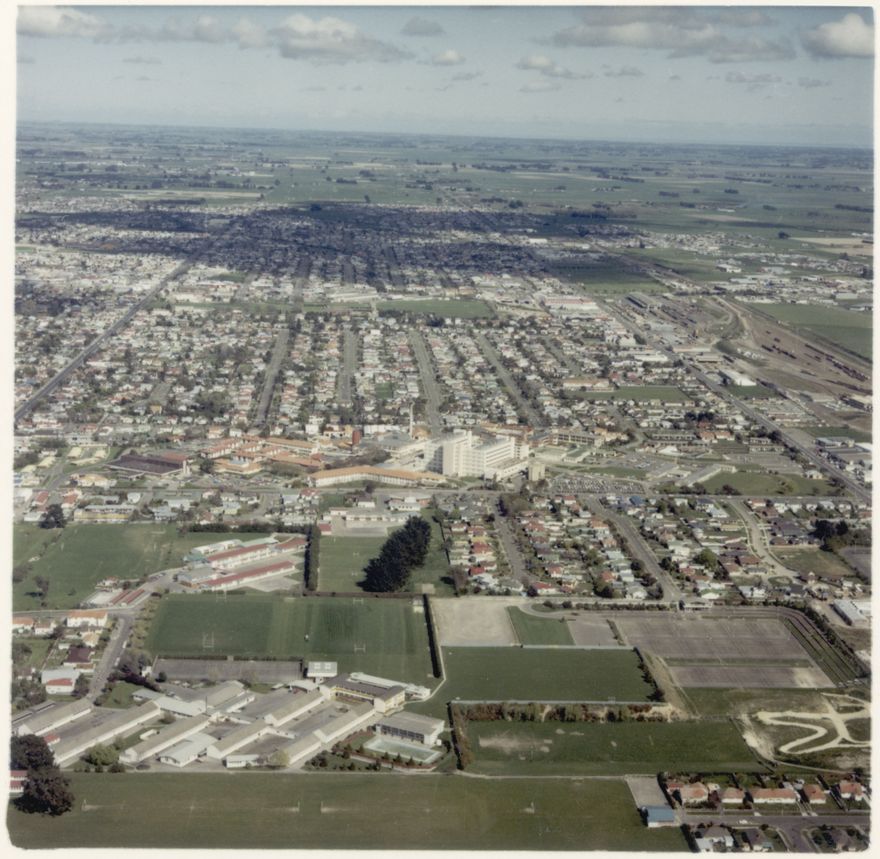 - Aerial photograph of Palmerston North Hospital.