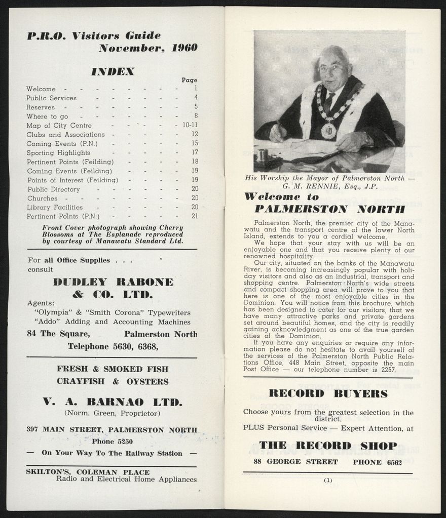 Visitors Guide Palmerston North and Feilding: October-December 1962
