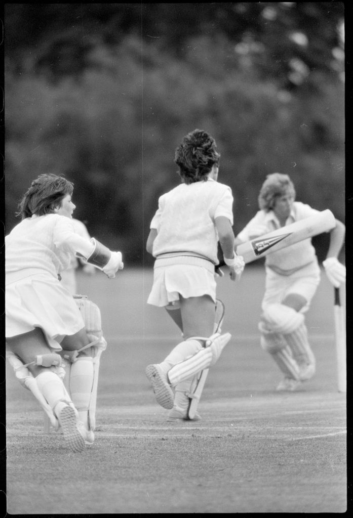 This image was taken (but not used) by the Evening Standard on 19th of January 1982. It depicts Manawatū Women’s cricket team taking on the International Australian Women’s team in a limited over warm-up match for the Hansell's Vita Fresh Women's World Cup 1981/1982. The match was held at Ongley Park in Palmerston North. The Australian team won by 202 runs. The match report ‘Aussies too polished in all facets’ was written by Ford Watson and published the next day: