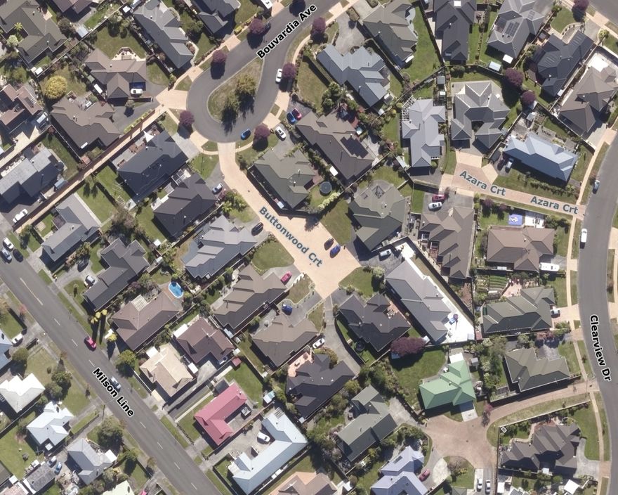 The court is named for buttonwood, conocarpus erectus. An exotic plant found in Aotearoa New Zealand.