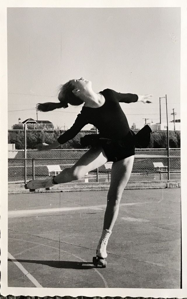 Artistic champion skater Carolyn Rumsey is practising her layback outside forward spin.