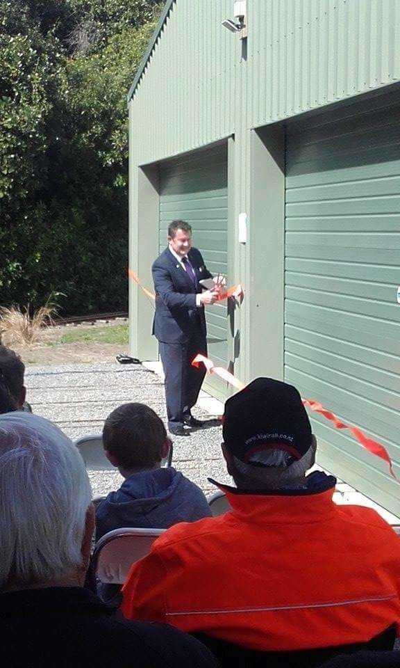 Mayor Grant Smith officially declares the new depot open at Esplanade Scenic Railway.