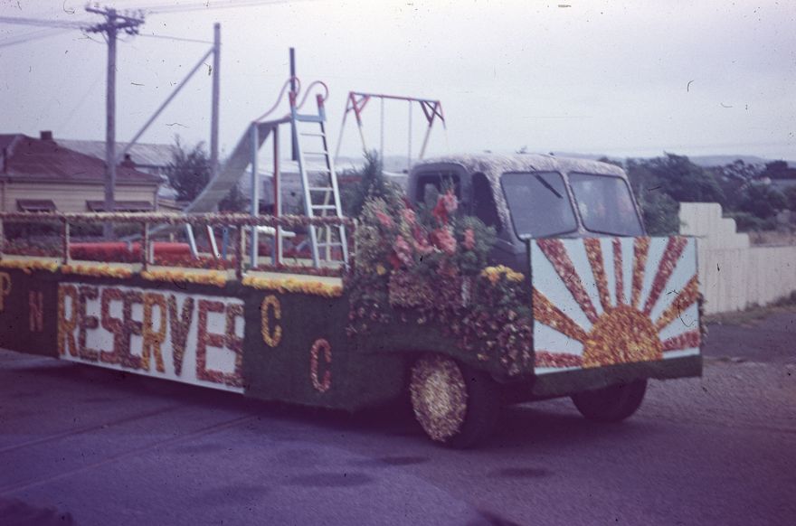 On February 22nd, the Standard printed an image of the final arrangement with the caption "The float of the reserves department of the Palmerston North City Council, which was part of the Floral festival this afternoon. It was built to represent a children's playground with a swing, a see-saw and a slide."