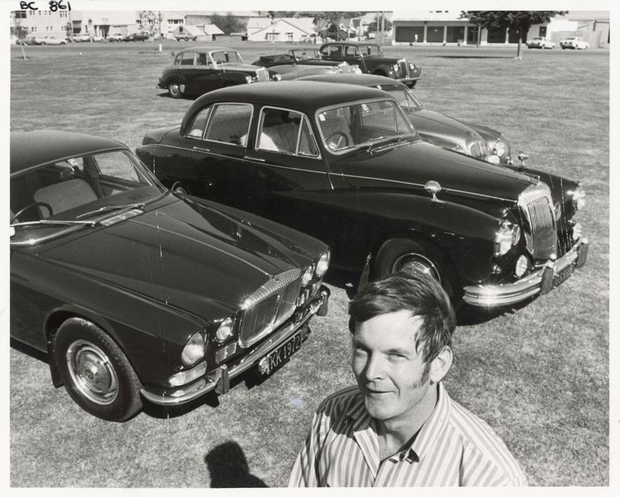 - The seventh annual meeting of the Manawatu Daimler and Lanchester Owners Club attracted 14 entries for judging. Cars from left: Maurice Hislop’s 1972 Sovereign (3rd place); John Falkner’s Majestic Major 1962 (1st place in best overall condition); Hislop’s 1963 V8 (2nd Place). Background: Bruce Malcolm’s 1956 Century; Dempsey’s Harford’s 1952 Special Sports; Tony Dempsey’s 1951 Consort.