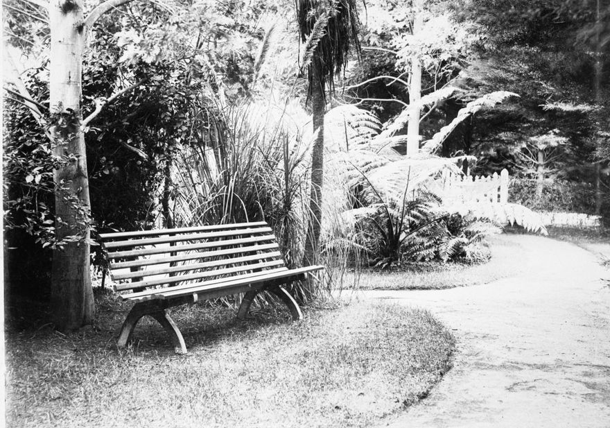 This photograph shows part of the garden of "The Wattles", the Palmerston North residence of Mr William Park. Mr Park, was an enthusiastic amateur horticulturalist and his four-acre garden was said to be one of the show places of Palmerston North.