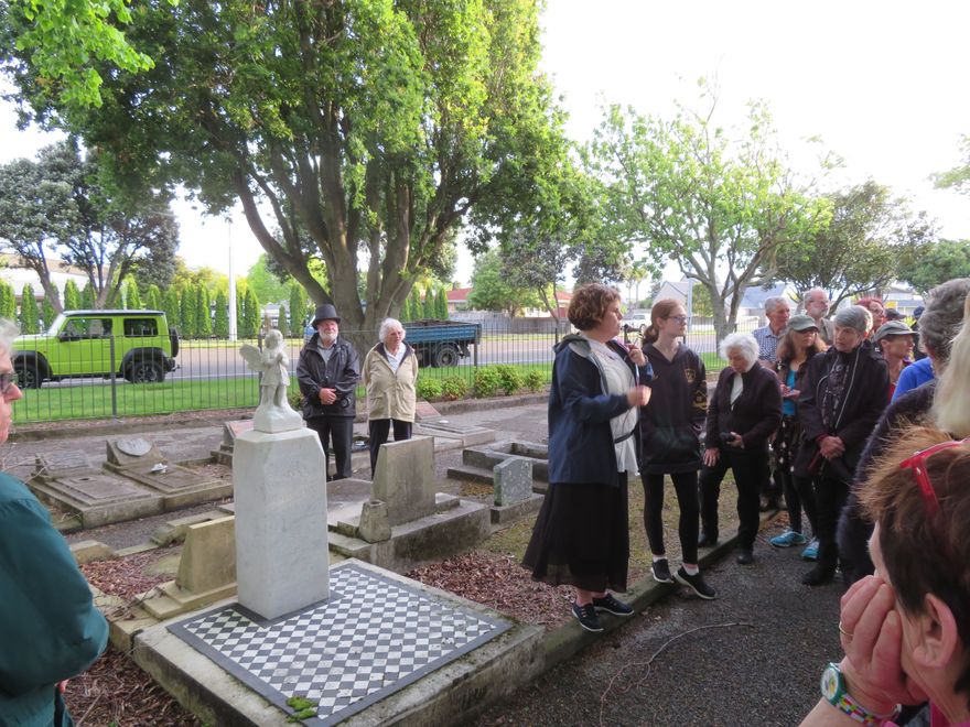 Terrace End Cemetery Tour hosted by Tina White and Leanne Hickman, part of the 13th Local History Week 2020. This is the grave of Violet May White, who died of diphtheria in 1923 when she was 10 years old, and is a relative of Palmerston North's writer Tina White.