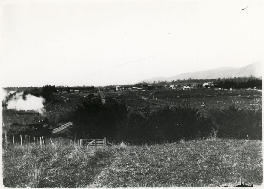 This photograph was taken from near the railway cutting (see train at the left of photo) and looks towards Shannon.
