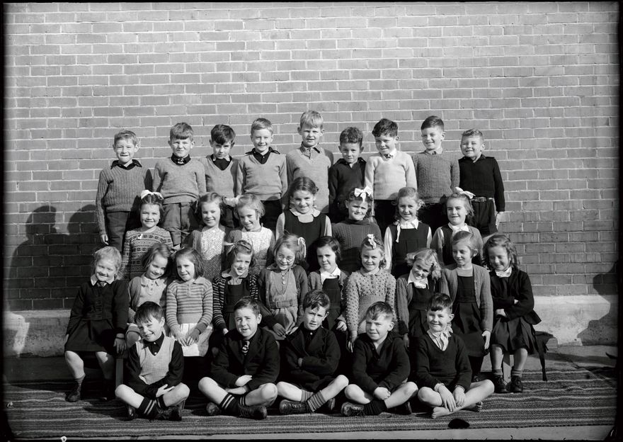 A unidentified group of young pupils attending Central School. Central Normal began as Palmerston North's first school in 1872, in Princess Street. It shifted to become Campbell Street School in 1890. When it was outgrown a new school was opened in Featherston Street in 1921 and became known as Central Normal School.