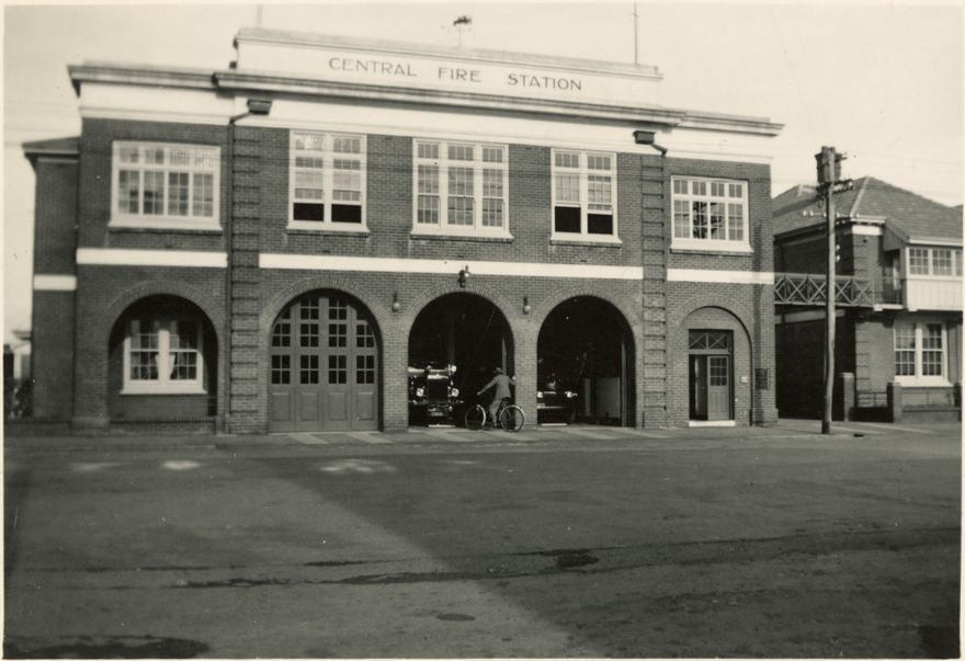 This Central Fire Station was located in Cuba Street, Palmerston North, and built in 1926 when the previous Station was outgrown. It could accommodate 5 fire engines and had living accommodation for the officers. It served as the Station until 1977 when new premises were opened in Cook Street.