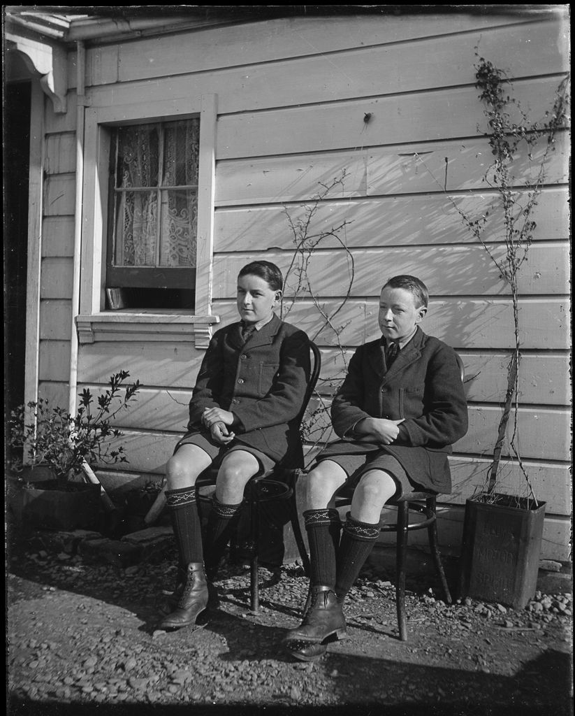 This image is believed to have been taken by Palmerston North Engineer Edwin Daniel Berry or his son Frank. It depicts two young boys, both of whom appear in several images in the Berry Family Collection. Although unknown, they appear to be contemporaries of Zenas Jefferson Berry (b. 1906).
