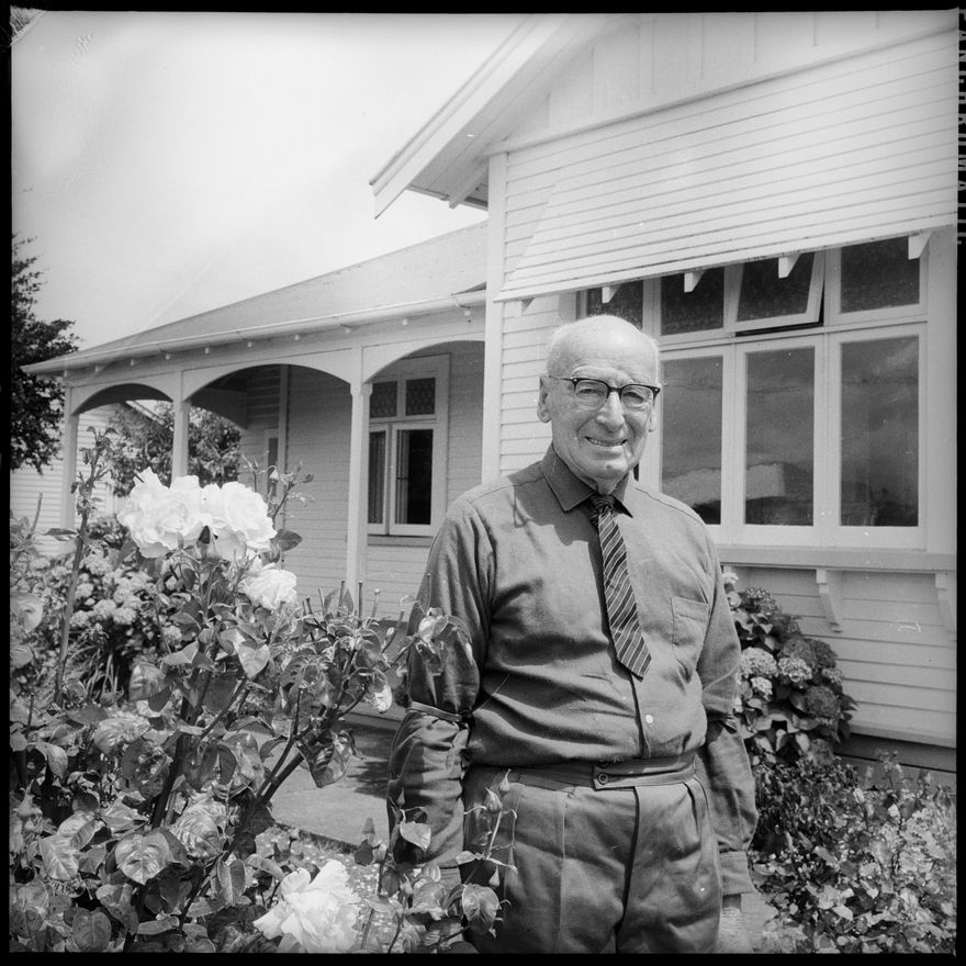 This image was taken for a story that ran in The Manawatu Evening Standard on January, 1964. "Mr W. R. Hopcraft" [He recieved a M.B.E. "Mr Hopcraft is chairman of the Manawatu-Oroua Electric Power Board and has held that position for the last four years. he joined the board in 1943. Before that he served on the Kairanga County Council from 1921 to 1939, and on the now defunct Foxton Harbour Board."]