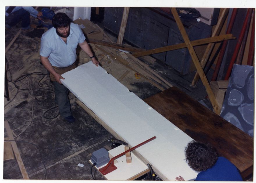 Bernie O'Donnell and Lynette Russell help to construct the sets of Little Shop of Horrors.