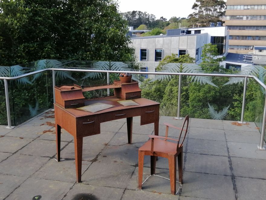 In 2011 Massey university revamped the memorial and the original plinth was replaced with a steel sculpture and storyboards. The sculpture is of a Victorian writing desk and chair, and incorporates various elements of Monro's life. It was based on an original piece of furniture carved by his wife Helene and includes a map of the region at that time and other items. The sculpture is made of corten steel and is the work of Mike Currie. As well, the concrete floor was replaced with basalt pavers and a new safety glass rail was fitted so the view was unobstructed