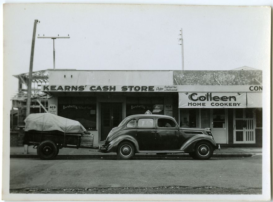 Car and trailer outside [Arthur] Kearns’ Cash Store at 64 Limbrick Street.