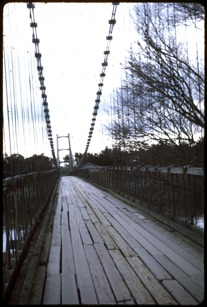 The suspension bridge across the Manawatu River at Opiki (engineer Joseph Dawson, Pahiatua) was constructed by the Tane Hemp Company in 1917-1918. It was known for many years as the Opiki Toll Bridge. It closed in 1969 but can still be seen today (2007).