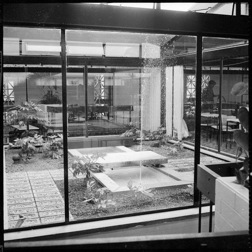This image was taken for a story that ran in The Manawatu Evening Standard on 3rd December 1965 "The simplicity of design does not detract from the effective glassed partition between the two lounge bars in the new Awapuni Hotel."