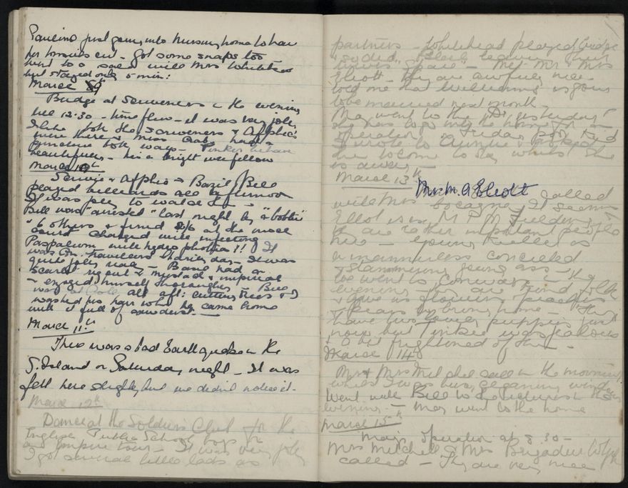 Handwritten diary of Ann ('Nan') Kathleen Jacques, nee Jobson (31 December 1894 - 27 August 1994). She immigrated to New Zealand from England in 1928 with her husband William Jacques, who had been appointed to the staff of the new Massey Agricultural College.