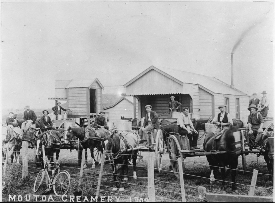 This skimming station was constructed by the NZ Farmers Dairy Union Ltd. and was sold to the Shannon Co-op Dairy Co. Ltd.in 1908. The station supplied cream to the Shannon Co-op’s butter factory at Shannon from 1908 until 1917 when the station was closed. The skimming station was located on the road between Shannon and Foxton, near Bowe Road.