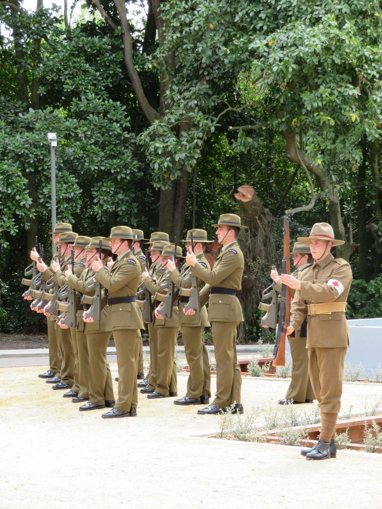 The Awapuni Memorial at the Palmerston North Racecourse was rededicated after its refurbishment, on 20 October 2016. The memorial was originally erected at the Race course in 1929, to commemorate the New Zealand Medical Corps, who trained there ahead of deployment in World War One. After falling into disrepair a project to restore it began in 2014, at a cost of $200,000. The Royal New Zealand Army Medical Corps established the project team, with Palmerston North City Council and Awapuni Racing Centre. The soldier closest to the foreground is wearing a replica WWI New Zealand Army Medical Corps uniform.