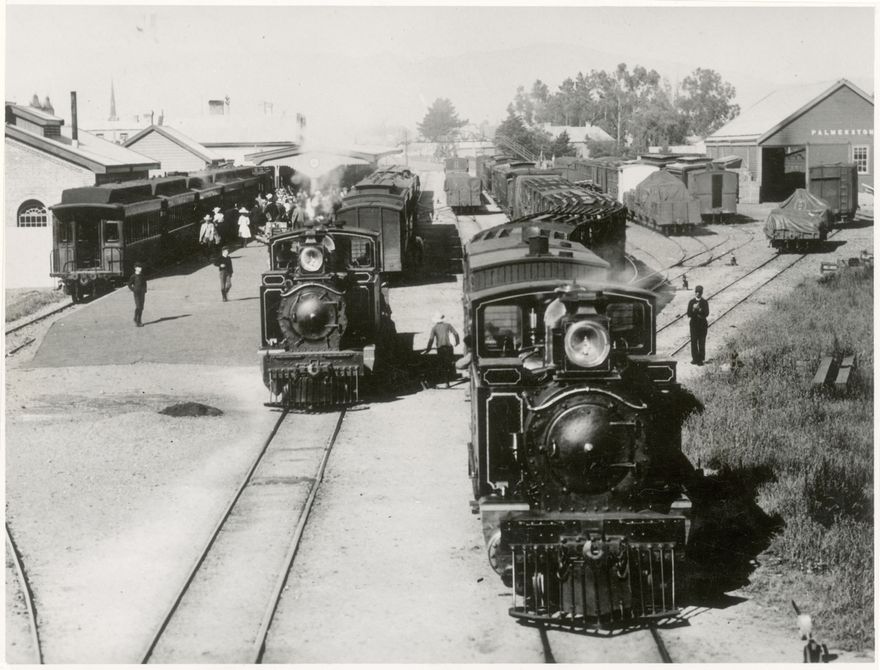 Ian Matheson 12/9/1969 notes: This photograph was taken from either the footbridge over the railway lines or the signal box alongside the lines and looks eastwards towards the Square. The railway station (with roofed platform) can be seen on the left, directly opposite Roger Mulrooney’s Masonic Hotel (which is the building standing today, on part of section 340). Further along Main Street can be seen the three-storey Railway Hotel on the corner of David Street (section 338). This hotel building was erected in 1904-05, thus helping to date this photo. In the far distance (over the roof of the railway station) can be seen some scaffolding rising into the sky. This appears to be the Post Office Clocktower under construction which also helps to date this photo as 1905-06. In the centre distance can be seen the top of the Grand Hotel, a building which was erected in 1906. The railway siding in the left foreground crosses Main Street to a timber yard situated on section 342. The Station was established in 1889. On 1 June 1964 the last passenger excursion train left the Main Street Station. See the souvenir ticket for last excursion. On June 7 1965 the last goods train to ever pass through The Square traveled through. From 1964-68 all railway buildings were demolished and removed from the Main Street site.