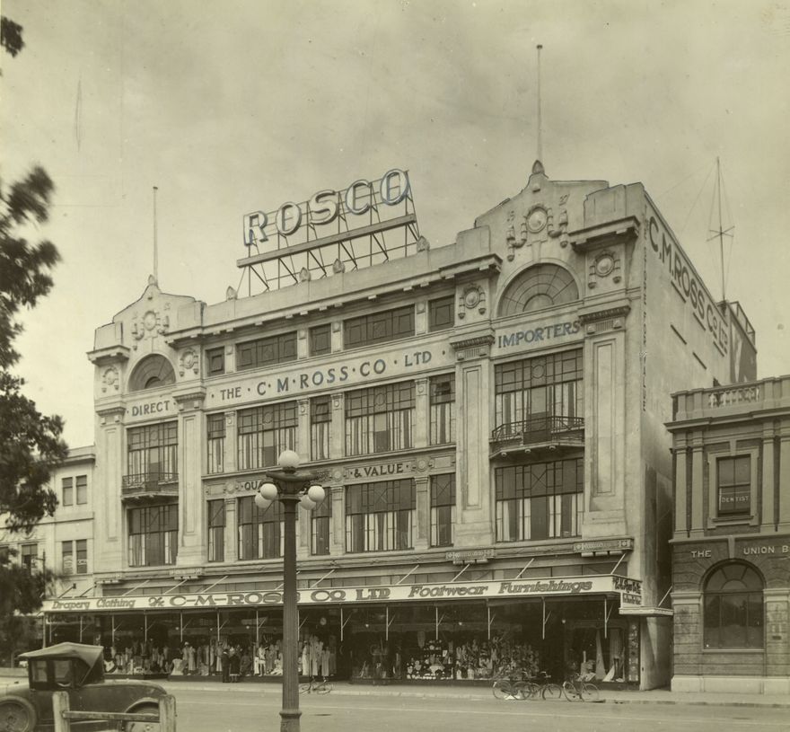 C M Ross co Ltd built a new department store on The Square during 1927-1928. It extended through to buildings in George Street and Coleman Place. Today the building houses the City Library