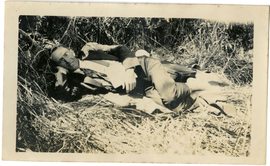 This small photograph album belonged to Mrs R Andrews of Rangitikei House. This photograph bears the caption, "Bob taking it easy". The Victoria Esplanade was opened in 1897, the same year as Queen Victoria's 60th year on the throne.