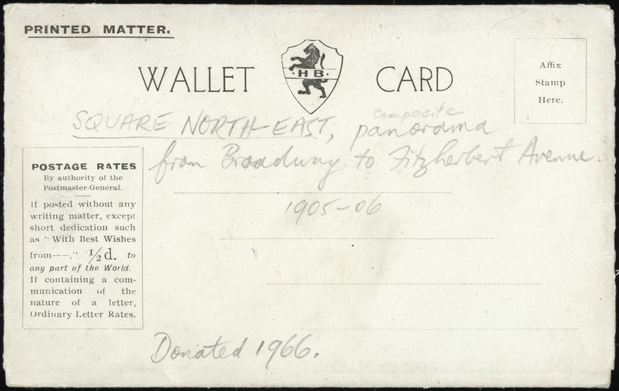 This postcard wallet shows a variety of Palmerston North views, including The Victoria Esplanade, a train going through the Manawatū Gorge, a panoramic view of The Square and the portion of The Square between Coleman Mall and Church Street West.