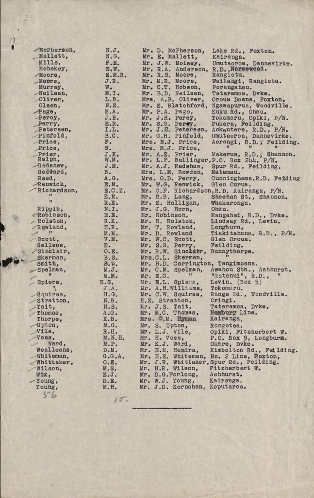 Letter dated 2 July 1945 from the National Service Department District Man-Power Office, with an attached list of the land girls in the district, thier employers names and addresses