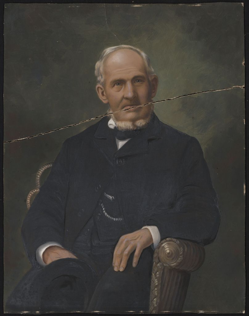 Painting of Edward Banks. Painted by Anderson of Main Street, Palmerston North. Edward Banks was a brickmaker of Palmerston North. He died in 1906, at 86 years of age, and is buried in Terrace End Cemetery.