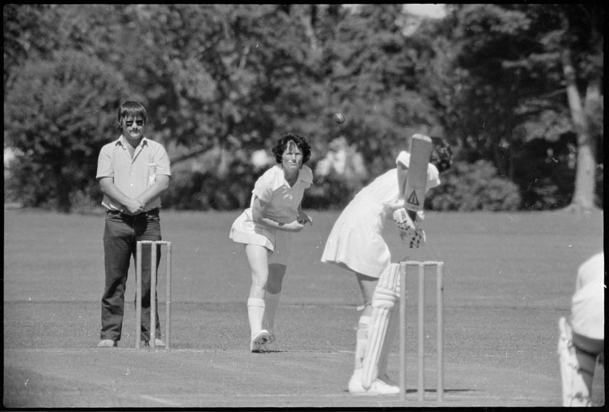 This image was taken (but not published) by the Evening Standard between the 30th and 31st of December 1980. It depicts a moment of action from the Hallyburton Johnstone Shield 2-day match between the Canterbury and Wellington women’s cricket teams. The match was drawn.