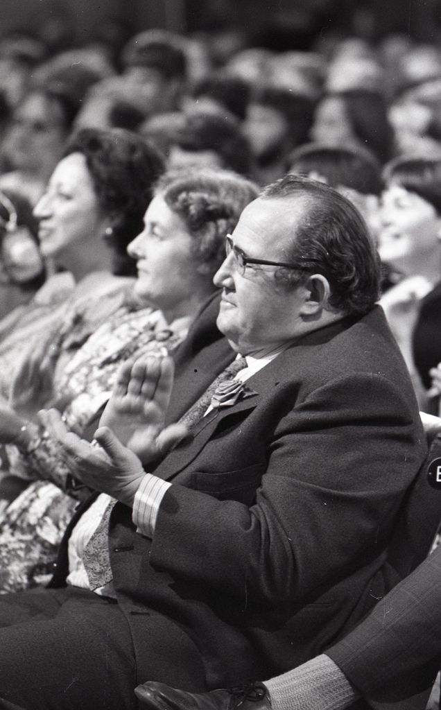 This image was taken (but not used) for a story that ran in The Manawatu Evening Standard on 1 November 1978 “Labour promise to get nation working” and “Rowling in top form at opening”. Labour leader Bill Rowling opened his general election campaign at Palmerston North’s Opera House with a rousing speech to over 1000 supporters on Tuesday 31 October. The Standard reported that, like many political events of recent times, the event was almost a pre-sold affair. Party faithful were granted early admission an hour and half before the public, ensuring a ‘full house’ fifteen minutes after general admittance was granted. When the odd heckler was heard during the event, their voices were quickly put down by other audience members. Spotted in the crowd are Labour spokesperson on social welfare and family affairs Whetu Tirikatene-Smith, former MP for Palmerston North Joe Walding, candidate for Rangitikei Max Hodgson, and Labour candidate for Manawatu Trevor de Cleene.