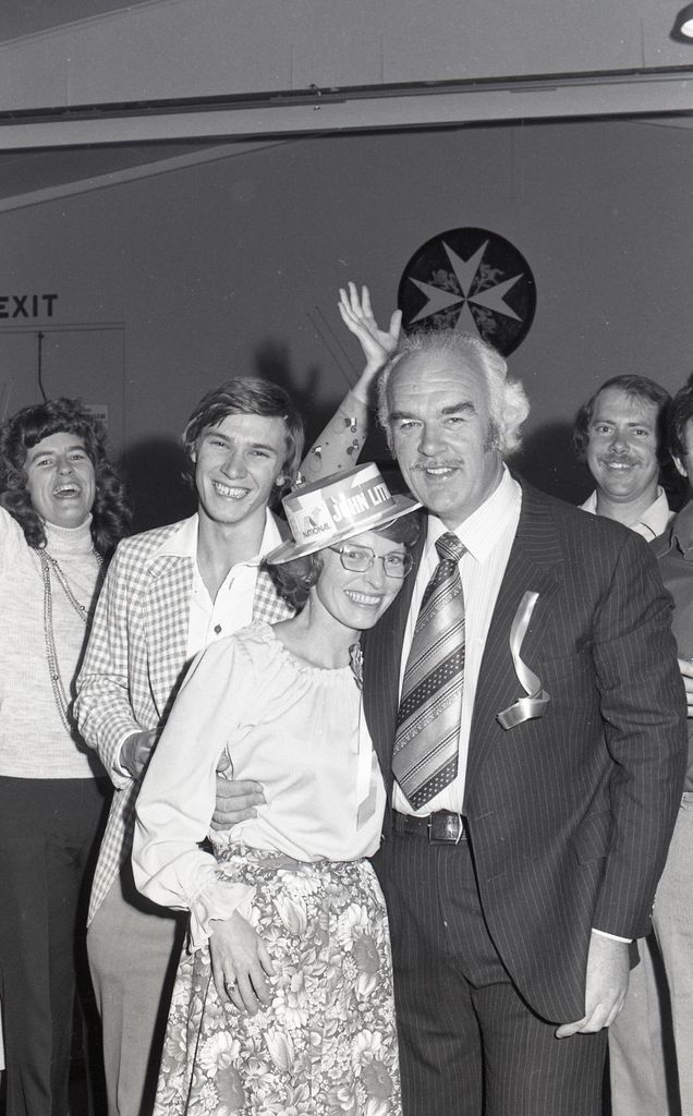 This image was taken for a story that ran in The Manawatu Evening Standard on Monday 27th November 1978 “Walding makes political history: Smiles in the face of defeat from the former Palmerston North M.P., Mr John Lithgow, and his wife, Ann, at their headquarters on Saturday night.”