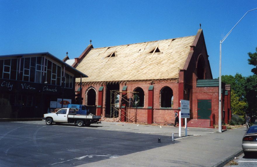 Methodist services began in Palmerston North in 1871. Because of growth it was decided to establish a church in the southern part of the town and land was purchased in Cuba Street, on the corner of Domain Street, in 1893. However, it was not until 1924 that the Trinity Church was built on the site. In 1989 the St Paul's and Trinity churches decided to unite on the Broadway site and this building was sold to the Apostolic Church. In 2003 the building was demolished as it was deemed an earthquake risk.