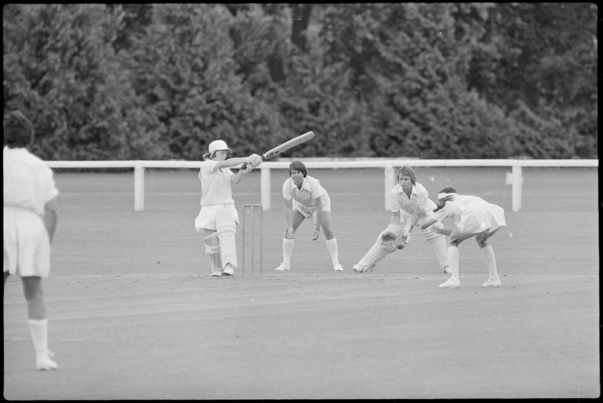 This image was taken (but not published) by the Evening Standard between the 27th and 29th of December 1980. It depicts a moment of action from the Hallyburton Johnstone Shield 2-day match between the Central Districts and North Shore women’s cricket teams. The match was drawn.