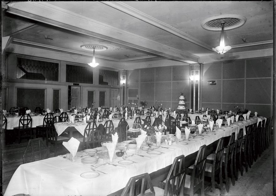 PDC (Premier Drapery Company) tea rooms laid out ready for wedding breakfast. The Plaza is now located on the site of this former department store.
