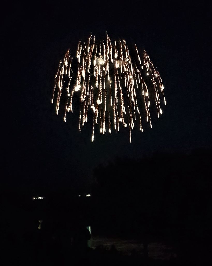 Photograph from the Manawatu cycle way of the Fireworks Over The River Display 2018. Fireworks were set off from the ANZAC Park area on the south bank of the Manawatu River. Display commenced at 9pm on Monday, 5 November 2018.