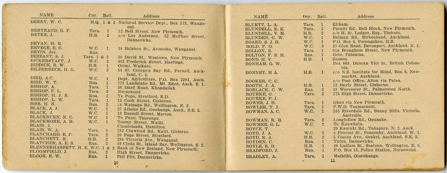 A roll book containing names, addresses and regimental particulars of those who served in the Wellington Infantry Regiment during World War One.