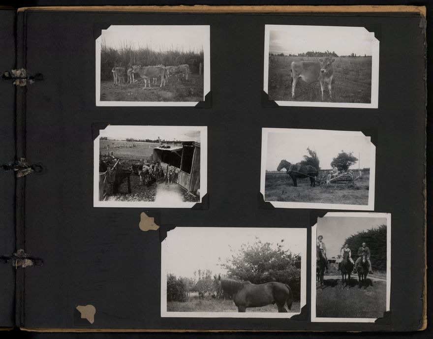 Contains photographs of Beth, Maurice and Elayne Thompson and their parents, Elizabeth and Charles, on their farm in Milson Line, family activities, holidays and Macauley relations. Charles Thompson and Elizabeth Macauley married in 1929 and had three children.