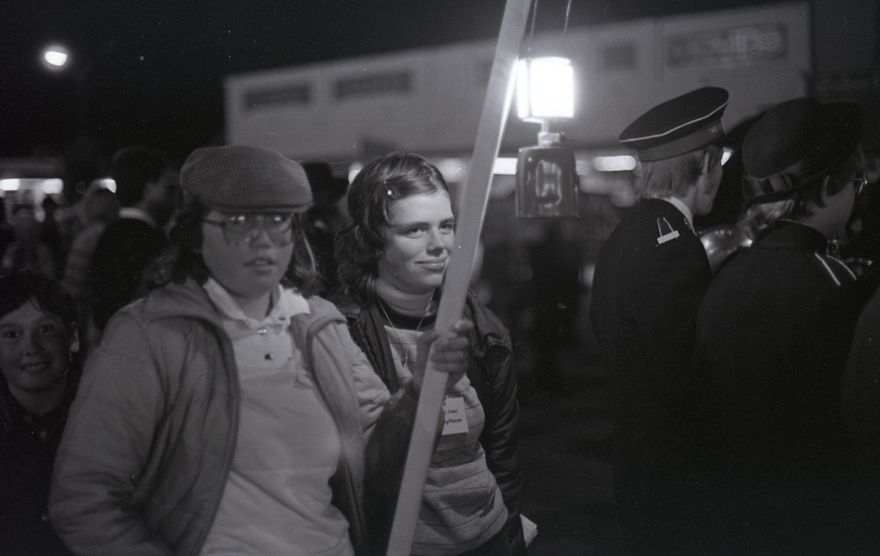“Feilding Gay Task Force members flank the Salvation Army Centennial march through the town last night. About 15 to 20 task force members walked silently beside the march, letting their banners speak for them in their protest against the Salvation Army’s opposition to the Homosexual Law Reform Bill. Spokesman for the group Peter Pawson said the protesters were asked to stop, but the protest remained peaceful and non-violent.”
