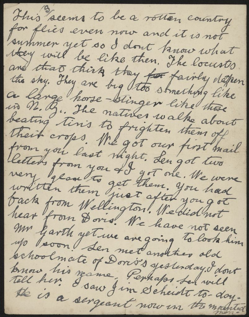 This letter from Pat to his parents is from Zeitoun Camp near Cairo in Egypt. Len and Pat both died at Chunuk Bair in 1915.