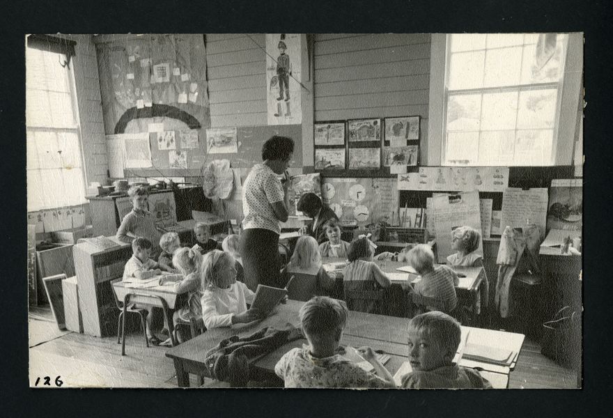 Miss Joy Whitehead teaching in the 'Old' Infant Classroom, Aokautere School