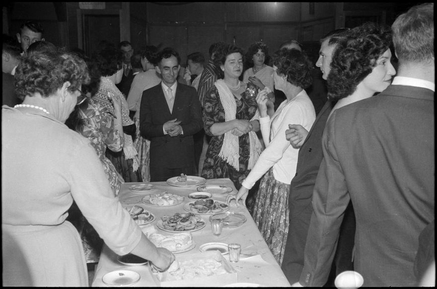Image depicts attendees enjoying themselves at a social at Jacquard Hosiery Mills.